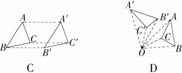 1.下列图形中,$\triangle A'B'C'$与$\triangle ABC$成中心对称的是( )