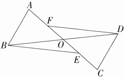 在 △DEO 与 △BFO 中,$\begin{cases}\angle EDO=\angle FBO,\\OD = OB,\\\angle DOE=\angle BOF,\end{cases}$
