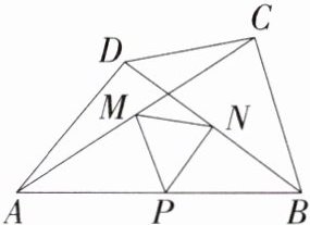 7.(2024湖南长沙岳麓三模,9,★★☆)如图,在四边形ABCD中,AD = BC,∠DAB = 50°,∠CBA = 70°,P、M、N分别是AB、AC、BD的中点,若BC = 8,则△PMN的周长是( )
