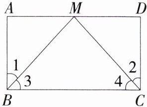 在△ABM和△DCM中,$\begin{cases}AB = DC\\\angle1=\angle2\\BM = CM\end{cases}$,