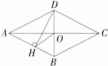 $\because DH\perp AB$,$\therefore OH=\frac{1}{2}BD = OB$,$\therefore \angle OHB=\angle OBH$,
