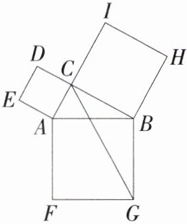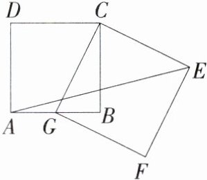 12.(2024贵州黔东南州二模,16,★★☆)如图,以Rt△ABC的三条边为边,向三角形ABC的外侧分别作正方形,连接CG,其中AC = 1,BC = 2,则CG的长为________.