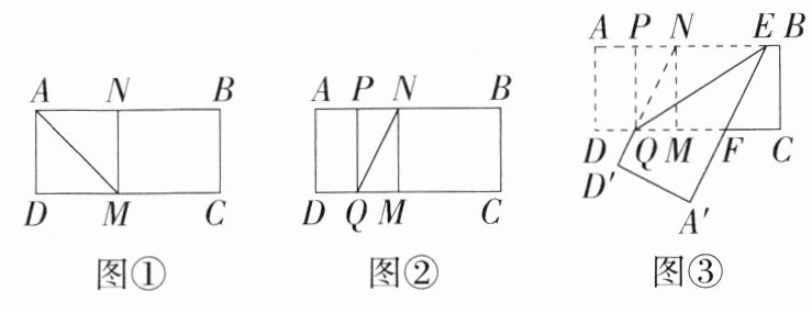 第二步:如图②,将四边形ADMN沿PQ对折,使AD与NM重合.将纸片展开,得到折痕PQ,然后连接NQ.