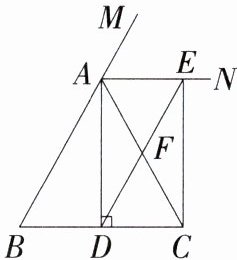 22. (2024湖南长沙宁乡期中)(12分)如图,在△ABC中,AB = AC,AD⊥BC,垂足为D,AN是△ABC的外角∠CAM的平分线,CE⊥AN于点E,连接DE交AC于点F.