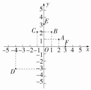 3. 在平面直角坐标系中,描出下列各点:A(2,1),B(1,2),C(-1,2),D(-4,-3),E(0,3),F(3,0).