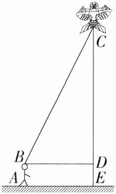 5. 跨语文·古诗词(2024湖南永州道县月考)“儿童散学归来早,忙趁东风放纸鸢”. 又到了放风筝的最佳时节. 某校八年级(1)班的小明和小亮学习了“勾股定理”后,为了测得风筝的垂直高度$CE$(如图),他们进行了如下操作:①测得水平距离$BD$的长为15米;②根据手中剩余线的长度计算出风筝线$BC$的长为25米;③牵线放风筝的小明的身高($AB$)为1.6米.