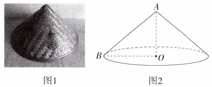 1. 图1是一顶圆锥形竹帽,图2是圆锥形竹帽的示意图,已知该圆锥的高$AO = 30\ cm$,底面半径$OB = 40\ cm$,