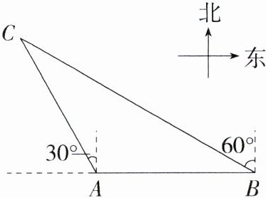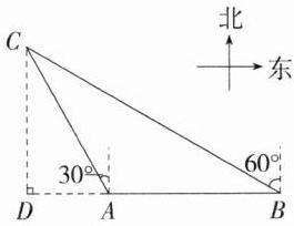 解析 如图,过点 $C$ 作 $CD\perp BA$ 交 $BA$ 的延长线于点 $D$,由题意可得,$\angle CAD = 60^{\circ}$,$\angle CBD = 30^{\circ}$,$\therefore \angle ACD = 30^{\circ}$,$\angle BCA=\angle CAD-\angle CBD = 60^{\circ}-30^{\circ}=30^{\circ}$,