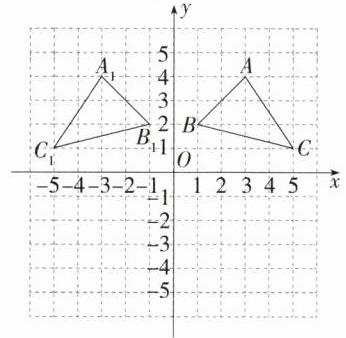 7.教材变式·P102T2 如图,画出$\triangle ABC$关于$y$轴对称的图形$\triangle A_1B_1C_1$.求:(M8203004)