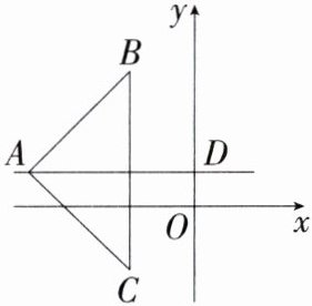 12.(2024河北邢台期末,23,★★☆)如图,在平面直角坐标系中,过点$A$作$AD\perp y$轴,垂足为$D$,点$B$关于直线$AD$的对称点为点$C$,连接$AC,AB,BC$,已知$AD = 10$,$OD = 2$.