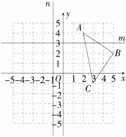11.(2024山东济南高新区期末,20,★★☆)在$10×10$的网格中建立如图所示的直角坐标系,规定在网格内(包括边界)横、纵坐标都是整数的点称为格点,已知$\triangle ABC$的三个顶点都是格点,直线$m$经过点$(0,3)$且平行于$x$轴,直线$n$经过点$(-1,0)$且平行于$y$轴.