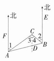 ∵小岛C在小岛A的北偏东60°方向,在小岛B的北偏西45°方向,