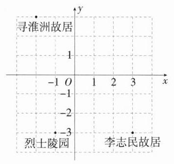 12. 情境题·革命文化(2024湖南长沙浏阳期中)浏阳素有“将军故里,红色小城”的美誉,下图是市内三个知名的红色景点,现将其放在适当的平面直角坐标系中,使得寻淮洲故居的坐标为(-2,3),烈士陵园的坐标为(-1,-3),则李志民故居的坐标为________.