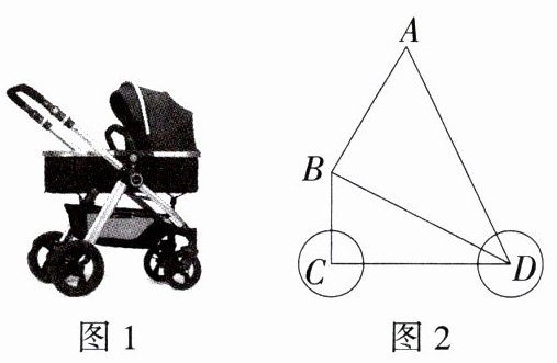 8.(2024广西南宁兴宁月考)图1是某品牌婴儿车,图2为其简化结构示意图. 根据安全标准,该车需满足BC⊥CD,现测得AB = CD = 6 dm,BC = 3 dm,AD = 9 dm,其中AB与BD之间由一个固定为90°的零件连接(即∠ABD = 90°),请通过计算说明该婴儿车是否符合安全标准.