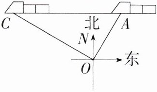 C $\because AC = 50\times10 = 500$ 米,$OA = 300$ 米,$OC = 400$ 米,$\therefore OC^{2}+OA^{2}=400^{2}+300^{2}=500^{2}=AC^{2}$,即 $OA^{2}+OC^{2}=AC^{2}$,$\therefore \triangle AOC$ 是直角三角形,且 $\angle AOC = 90^{\circ}$.$\because \angle AON = 30^{\circ}$,$\therefore \angle CON = 60^{\circ}$,即点 C 位于点 O 的北偏西 $60^{\circ}$ 方向.