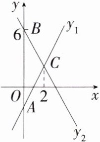 ∴C(2,2),设 y_{2} = kx + b(k ≠ 0),把(0,6),(2,2)代入可得$\begin{cases}b = 6 \\ 2k + b = 2\end{cases}$,解得$\begin{cases}k = -2 \\ b = 6\end{cases}$,