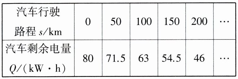 5.(2024湖南益阳沅江月考)为了解某品牌一款新能源汽车的耗电量,相关技术人员在汽车试验基地对该款新能源汽车做了耗电量试验,发现汽车剩余电量Q(kW·h)是汽车行驶路程s(km)的一次函数,试验数据记录如下.(M8204006)