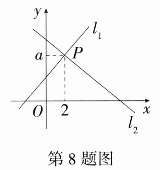 8. 数形结合思想 (2024湖南长沙三模,13,★★☆)如图,直线l₁:y = x + 1和直线l₂:y = mx + 5相交于点P(2,a),则关于x的不等式x + 1 ≥ mx + 5的解集为________.