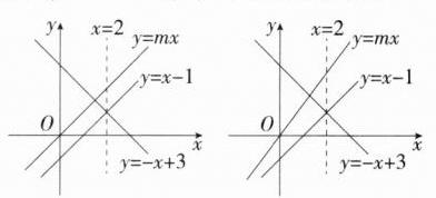 由题意知,当 $x>2$ 时,直线 $y = mx(m\neq0)$ 在直线 $y = x - 1$ 和直线 $y = -x + 3$ 的上方,画出图象如下: