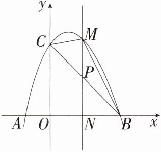 (2)若点$P$为线段$BC$上的动点(不与点$B$、$C$重合),$PM// y$轴,且$PM$交抛物线于点$M$,交$x$轴于点$N$,当$\triangle BCM$的面积最大时,求点$P$的坐标.