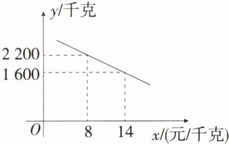 22.(2024湖南益阳沅江三模)(8分)网络销售已经成为一种热门的销售方式,某果园在网络平台上直播销售荔枝.已知该荔枝的成本为6元/千克,销售价格不高于18元/千克,且每售卖1千克荔枝需向网络平台支付2元的相关费用.经过一段时间的直播销售发现,每日销售量y(千克)与销售价格x(元/千克)满足如图所示的一次函数关系.(M9201005)