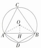 ∴弦AB所对的圆周角有两个.①当顶点在优弧上时,如点C,∠C = $\frac{1}{2}$∠AOB = 60°.②当顶点在劣弧上时,如点D,∠D = 180° - ∠C = 180° - 60° = 120°.综上可知,该弦所对圆周角的度数是60°或120°.