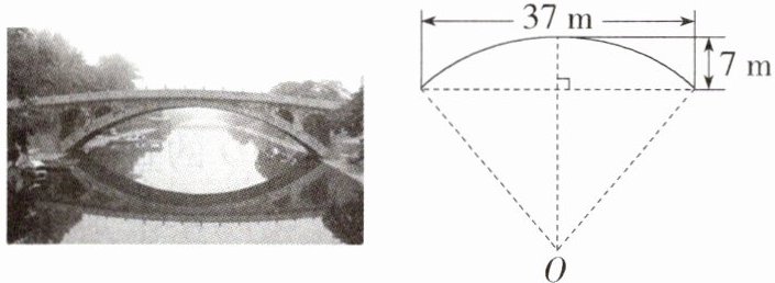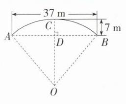 11.情境题·中华优秀传统文化(2023广西中考,10,★★☆)赵州桥是当今世界上建造最早、保存最完整的中国古代单孔敞肩石拱桥.如图,主桥拱呈圆弧形,跨度约为37 m,拱高约为7 m,则赵州桥主桥拱半径约为(M9202003) ( )
