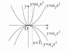 【解法二】特殊点位置法:如图,$\because$ 直线$x = 1$与四条抛物线的交点从上到下依次为点$(1,a_{1})$,$(1,a_{2})$,$(1,a_{3})$,$(1,a_{4})$,$\therefore a_{1} > a_{2} > a_{3} > a_{4}$.
