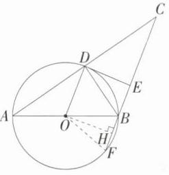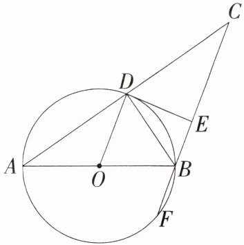 2.(2024湖南娄底娄星二模)如图,在△ABC中,AB = BC,AB为⊙O的直径,AC与⊙O相交于点D,过点D作DE⊥BC于点E,CB的延长线交⊙O于点F,连接OD,DB.(M9202005)