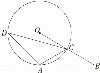 解析\n(1)证明:如图,连接$OA$,因为$OC = BC$,$2AC = OB$,$OA = OC$,所以$OC = BC = AC = OA$,所以$\triangle ACO$是等边三角形,所以$\angle O=\angle OCA=\angle OAC = 60^{\circ}$。因为$AC = CB$,所以$\angle CAB=\angle B$。因为$\angle OCA$是$\triangle ACB$的外角,所以$\angle OCA=\angle CAB+\angle B = 2\angle B$,所以$\angle B=\angle CAB = 30^{\circ}$,所以$\angle OAB=\angle CAB+\angle OAC = 30^{\circ}+60^{\circ}=90^{\circ}$,所以$OA\perp AB$,因为$OA$是$\odot O$的半径,所以$AB$是$\odot O$的切线。\n(2)如图,过$A$点作$AE\perp CD$于点$E$,因为$\angle O = 60^{\circ}$,所以$\angle ADC=\frac{1}{2}\angle O = 30^{\circ}$。因为$\angle ACD = 45^{\circ}$,$AC = OC = 2$,所以$AE = CE=\sqrt{2}$,所以$AD = 2AE = 2\sqrt{2}$,所以$DE=\sqrt{AD^{2}-AE^{2}}=\sqrt{(2\sqrt{2})^{2}-(\sqrt{2})^{2}}=\sqrt{6}$,所以$CD = DE + CE=\sqrt{6}+\sqrt{2}$。