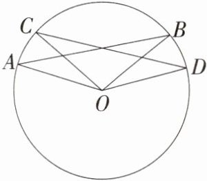 19.(2024江西南昌三中教育集团期中)(6分)如图,A、B、C、D是☉O上的点,且$\overset{\frown}{AC}=\overset{\frown}{BD}$,∠AOB = 125°,求∠COD的度数.
