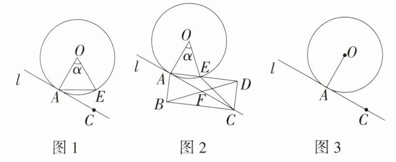 已知点A是半径为r的☉O上的定点,连接OA,将线段OA绕点O按逆时针方向旋转α(0°<α<90°)得到OE,连接AE,过点A作☉O的切线l,在直线l上取点C,使得∠CAE为锐角.(M9202005)