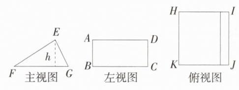 解析 如图,由几何体中长、宽、高和三视图中各边长的对应关系可知,主视图中 FG 边上的高 $h = AB = 3$,$BC = HK = IJ$,$FG = HI = KJ$. 因为俯视图的面积是左视图面积的 2 倍,所以 $FG = KJ = 2AB = 6$,所以主视图的面积 $=\frac{1}{2}×6×3 = 9$.