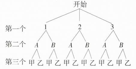 由树状图知,共有12种等可能的结果,其中包含1、A、甲的结果只有1种,