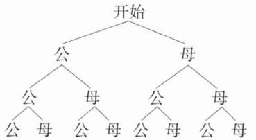 由树状图可知,共有8种等可能的情况,其中3只小鸡中恰有1只为母鸡的情况有3种,