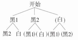 共有6种等可能的结果,其中恰有1黑1白的结果有4种.