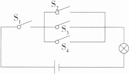 11. 跨物理·电路图(2023湖南娄底二模,15,★☆☆)在如图所示的电路图中,当随机闭合S1,S2,S3,S4中的两个开关时,能够让灯泡发光的概率为________.(M9204002)