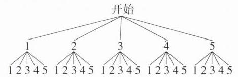 把音阶商、角、徵、羽、宫分别记为1、2、3、4、5,画树状图如图所示: