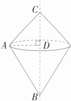 15.(2023湖南娄底中考)如图,在$\triangle ABC$中,$AC = 3$,$AB = 4$,$BC$边上的高$AD = 2$,将$\triangle ABC$绕着$BC$所在的直线旋转一周得到的几何体的表面积为________.