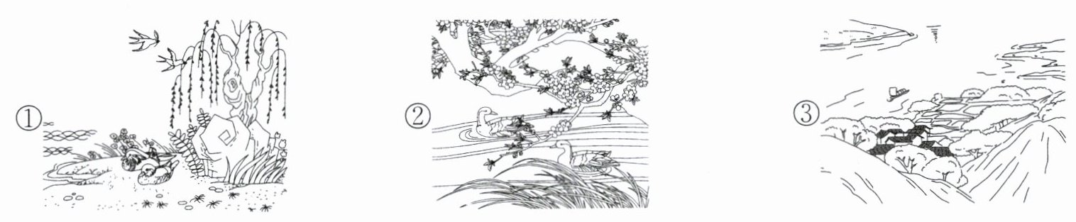3. 看到美如画的风景,老师让大家分享自己联想到的诗句。(3分)