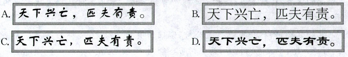 1. 龙一鸣在展馆的大门上看到了一块用隶书书写的牌匾,你觉得他看到的是下面的哪幅作品?( )(2分)
