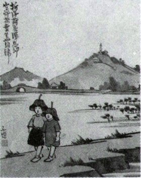 巴金先生赞扬丰子恺是“一个与世无争、无所不爱的人”,拥有“一颗纯洁无垢的孩子的心”。丰子恺的漫画深入浅出,雅俗共赏。从下面两幅漫画中任选一幅,说说“趣”在哪儿。