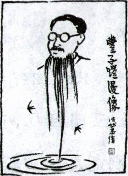 (示例二)右图:丰子恺画自画像的时候,把自己的胡子画成了湖边的柳条,还有燕子穿行其间,由此可以看出他的童心未泯及对大自然的热爱,这十分有趣。