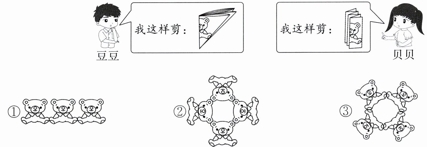 5. 豆豆和贝贝参加剪纸比赛,豆豆剪的是( ),贝贝剪的是( )。