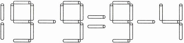 解析:本题不止一种移动方法。如等号左边的 19 中右上方的小棒平移到左下角变成 16,9 中左上方竖着的小棒平移到等号右边使减法变成加法,得到 $16 - 3 = 9 + 4$。