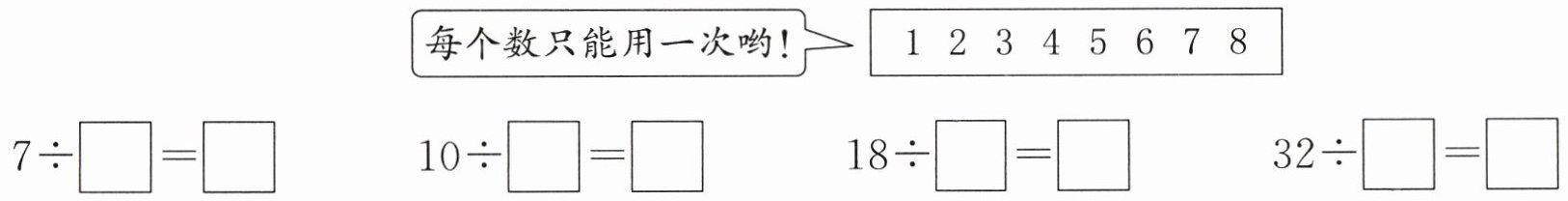 $7\div1 = 7$(或$7\div7 = 1$) $10\div2 = 5$(或$10\div5 = 2$)