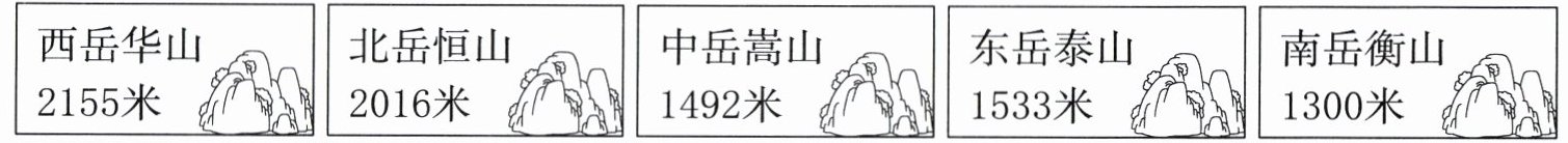 7. 五岳是中华传统文化中五大名山的总称。下面是我国五岳的大概高度。