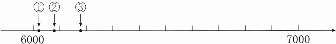 5. 徐浦大桥全长6017米,是中国上海市境内连接徐汇区与浦东新区的过江通道,位于黄浦江水道之上,为上海外环高速公路组成部分之一。用下面点( )表示这个数的大致位置最合适。