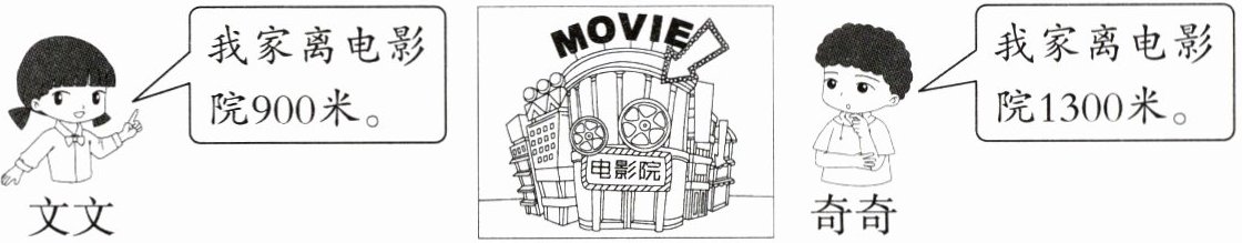 3. 文文家、奇奇家和电影院在同一条笔直的路上。文文家和奇奇家相距多少米?(10 分)