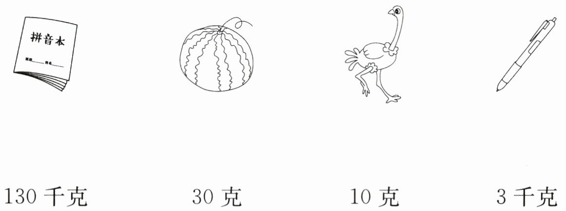 1.下面的物品有多重?连一连。(8分)